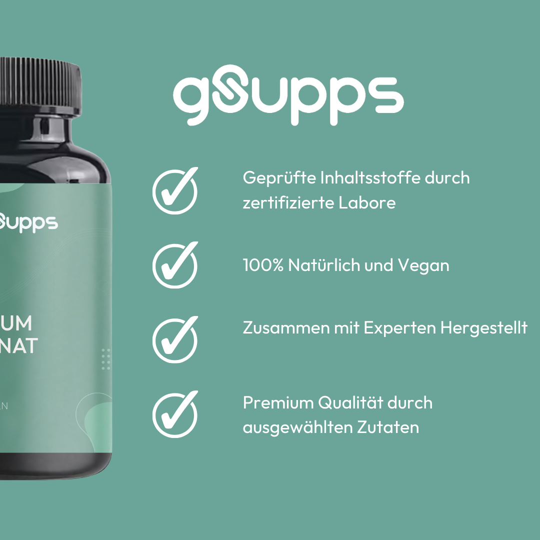 Bei gSupps setzen wir auf höchste Qualität und Reinheit in jedem unserer Produkte. Unsere Magnesiumbisglycinat-Kapseln enthalten ausschließlich reines, hochwertiges Magnesium, das an die Aminosäure Glycin gebunden ist. Diese besonders gut verträgliche Form ermöglicht eine effektive Aufnahme im Körper – ohne unnötige Belastung für den Magen-Darm-Trakt.
